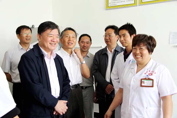 2014年8月13日,全国人大常委会副委员长、农工党中央主席陈竺(左一)在大方县理化乡卫生院调研