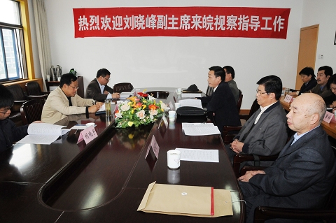 在随后举行的座谈会上,牛立文主委向刘晓峰副主席一行汇报了农工党安徽省委的工作情况。刘晓峰副主席在听取汇报后后对农工党安徽省委近年来的工作表示肯定。他指出,农工党安徽省委成立时间比较早,已经有50年的发展历史,在思想建设、组织建设、机关建设、制度建设和社情民意信息工作等方面都作出了比较突出的成绩。在今后的工作中要继续深入调查研究,积极做好参政议政工作,围绕环境污染治理、食品安全、“三农”问题等社会关注的热点问题多做调查研究,利用提案和社情民意等多种渠道,提出切实可行的建议和解决办法。