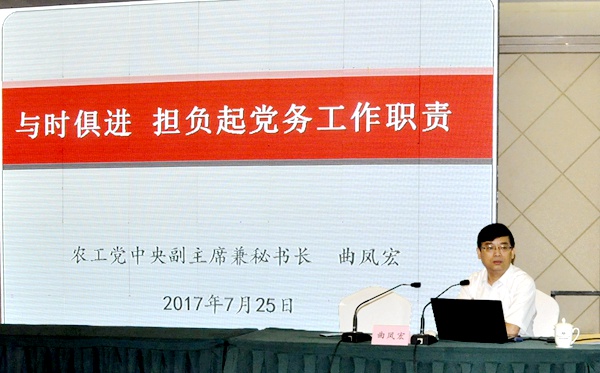 2017年7月24日至28日,农工党省级组织专职副主委培训班在辽宁沈阳举行。7月25日上午举行了开班式,农工党中央副主席兼秘书长曲凤宏,辽宁中医药大学校长、农工党辽宁省委会主委杨关林出席开班式并讲话。