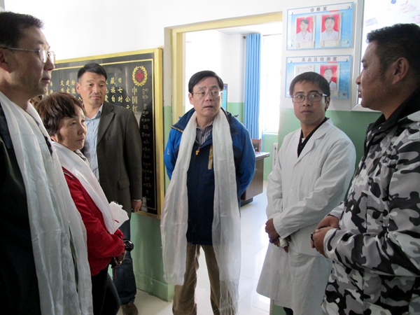 25日,调研组来到平均海拔4200米的玉树藏族自治州。一下飞机,调研组一行不顾高原不适,驱车直奔“4.14”玉树大地震灾后由农工党各级组织捐款援建的巴塘乡卫生院。当看到卫生院完整的设备、齐备的基药和有序的运行,能够基本满足近万人口医疗保障时,何维感到十分欣慰。他走进每一间诊疗室,与卫生院负责人亲切交谈,仔细询问医务人员工作和生活状况。当医务人员反映他们多年没有进修、学习机会,乡村医生留不住时,何维动情地说,在这样艰苦条件下能够坚守就是可贵,对这里的乡村医生各级领导、各方面更要多些关爱,农工党会关注这一问题,协调帮助为他们创造学习交流的机会。