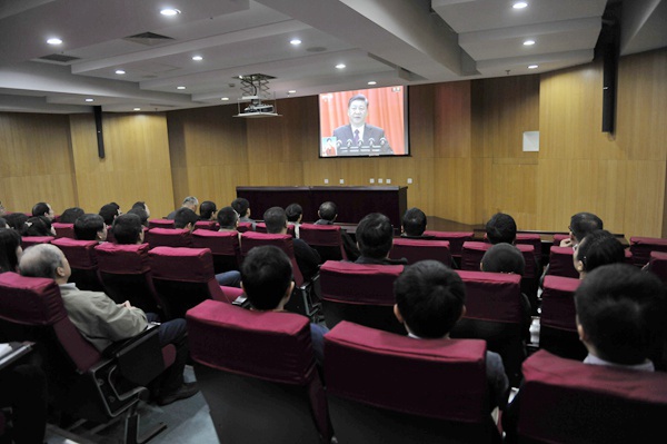 农工党中央机关组织机关干部收看十三届全国人大一次会议闭幕会