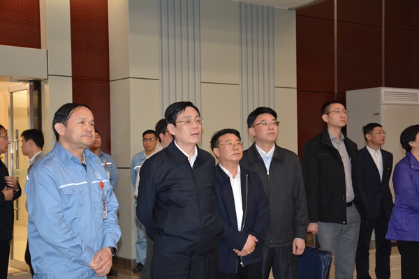 何维在九江石化观看环保管理闭环控制演示