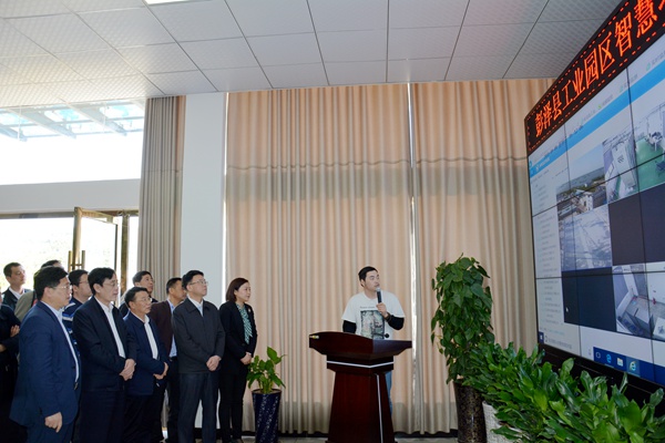 彭泽县工业园区向调研组介绍智慧环保监控平台