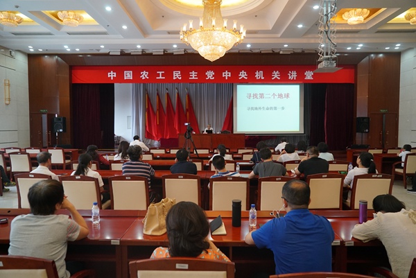 2019年5月30日下午,农工党中央“机关小讲堂,建功大舞台”活动在中央机关举行。农工党第十二、十三届中央委员会副主席,农工党北京市第十届委员会主任委员,中国著名天文学家、中国科学院院士、中科院国家天文台研究员陈建生作了题为“寻找第二个地球——寻找地外生命第一步”的报告。