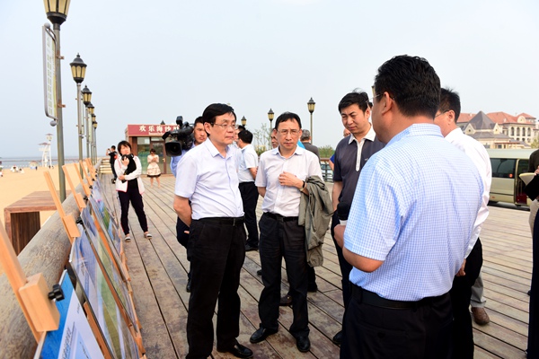 6月1日,调研组在青岛市实地调研海洋生态环境保护工作,考察了唐岛湾海洋湿地公园建设情况、中科城污水处理厂排污口、凤河入海口,并赴潍坊市考察了“南红北柳”生态工程等项目区。