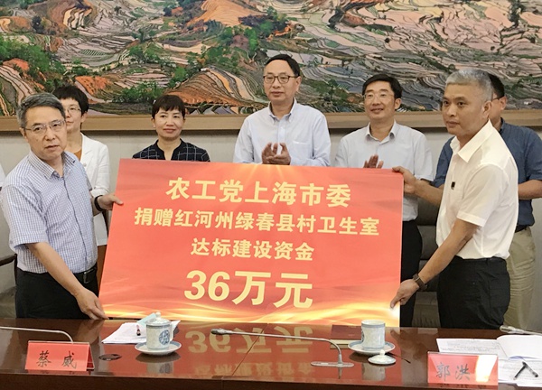 会上,农工党上海市委会秘书长王晓东代表农工党上海市委会向绿春县捐赠村卫生室达标建设资金36万元。州委书记姚国华在会后与调研组进行了深入交流。