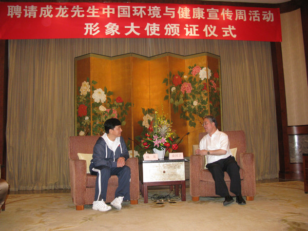 2011年5月17日,聘请成龙先生担任“中国环境与健康宣传周活动形象大使”颁证仪式在上海举行,全国人大常委会副委员长、农工党中央主席、中国环境与健康宣传周领导小组组长桑国卫亲自为成龙颁发聘书。