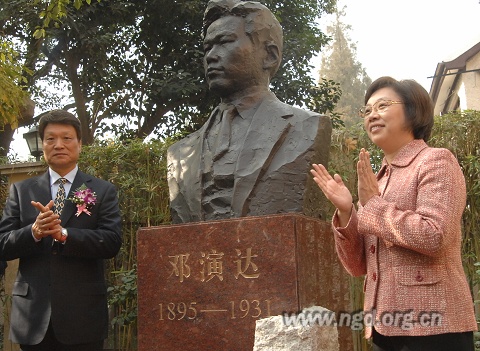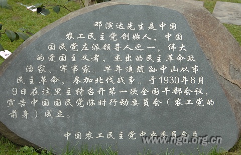 桑国卫主席在回顾了农工党建立79年来为中华民族的解放事业和新中国的繁荣发展作出的积极贡献之后指出:今年是新中国成立60周年及中国共产党领导的多党合作和政治协商制度确立60周年,在这个重要的历史时刻,我们举行农工党一干会址挂牌暨邓演达铜像落成揭幕仪式,深刻缅怀革命先烈的伟大功绩,对于进一步继承和发扬农工党的爱国革命优良传统,进一步提高对中国特色社会主义政治制度和政党制度的历史必然性、巨大优越性和伟大独创性的认识,进一步增强发展中国特色社会主义的政治共识,都有重要的意义。在新的历史起点上,农工党的同志将更加紧密地团结在以胡锦涛同志为总书记的中共中央周围,高举中国特色社会主义伟大旗帜,深入学习贯彻科学发展观,树立和践行社会主义核心价值体系,进一步搞好政治交接,不断巩固和发展与中国共产党团结合作的思想政治基础,始终不逾地把中国特色社会主义作为共同理想信念、共同前进方向,在中国共产党的坚强领导下,统一思想,凝聚力量,同心同德,奋发有为,为建设中国特色社会主义不断作出新贡献。