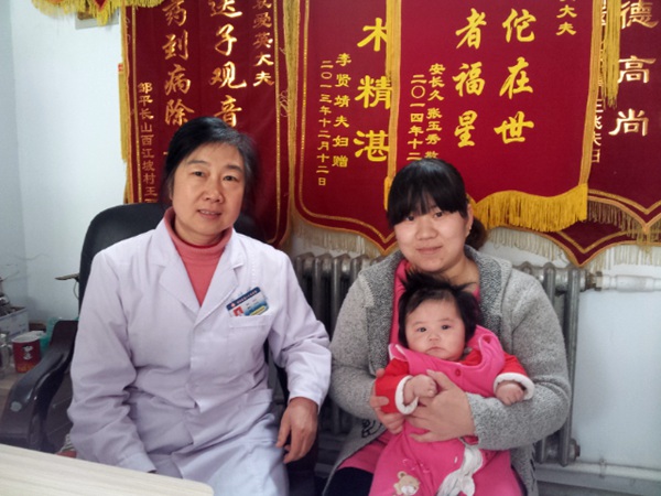 走进门诊,室内挤满了前来治疗不孕不育症的患者。她们表情神态各异,其中有要子心切的小两口,也有多年未孕跑遍全国大小医院早已失去信心,抱着试试看的心态的中年夫妻。不大的诊室墙壁上挂满了患者送来的锦旗。“送子观音”、“送子使者 ”、“医术精湛”,这些充满着敬意和谢意的烫金大字是患者对这所诊室的主人——袁爱英大夫高超医术、高尚医德发自内心的真情表达和流露。