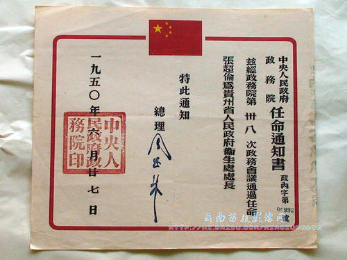 周总理亲笔签名委任状
