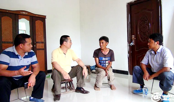 在班奈村五组赵学中家里,张龙明与赵学中促膝交谈,共谋发展。看到赵学中家住的宽敞明亮的小洋楼,面积160平方米,与一年前低矮潮湿的老屋形成鲜明对比,张龙明很高兴。