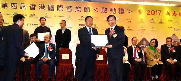 2017年2月20日晚,“第四届香港国际音乐节”在香港举行了启动礼。农工党南通市文教支部党员、江苏省音乐家协会会员、南通市政协委员、南通星海琴行总经理汪祖洪先生应邀参会,中央驻港联络办新界工作部刘林部长向汪祖洪颁发了“香港国际音乐节筹备委员会荣誉顾问委任状”。