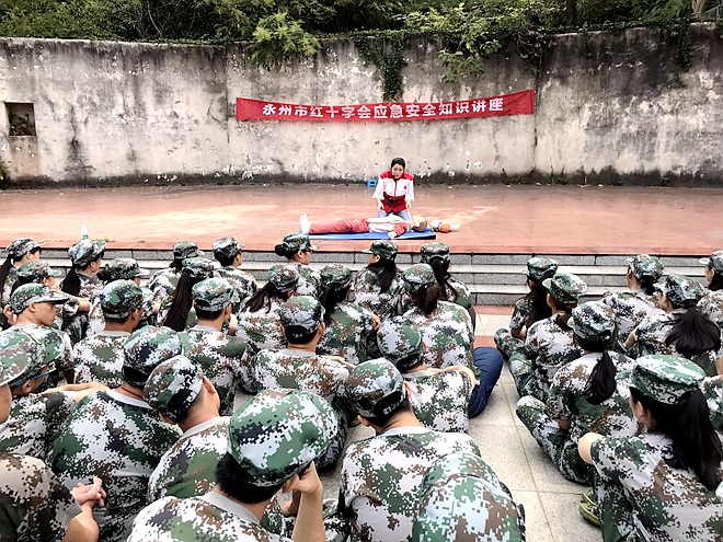 2017年 9月,她作为红十字会救护培训师资,先后来到冷水滩翠竹园小学、梅湾小学、市委机关幼儿园,永州职业技术学院医学校区,对1万余名学生开展了常见意外伤害急救知识讲座,通过现场互动学习,让孩子和老师们受益匪浅。11月,她受零陵区红十字会、零陵区教育局委托,来到永州工商职业中专为4500名师生开展救护知识讲座培训,通过让更多人成为第一目击者,她让身边更多人学会了自救和互救。一个月后,她走进冷水滩帝王广场社区,为近六十多名物业从业人员及业主普及了生活中常见的意外事件急救处理,止血包扎固定,气道异物梗阻,烧烫伤、动物咬伤,心跳呼吸骤停的紧急处理预防和急救,这些知识,通过她的讲授,被更多的人熟知,无形中挽救了许多生命。