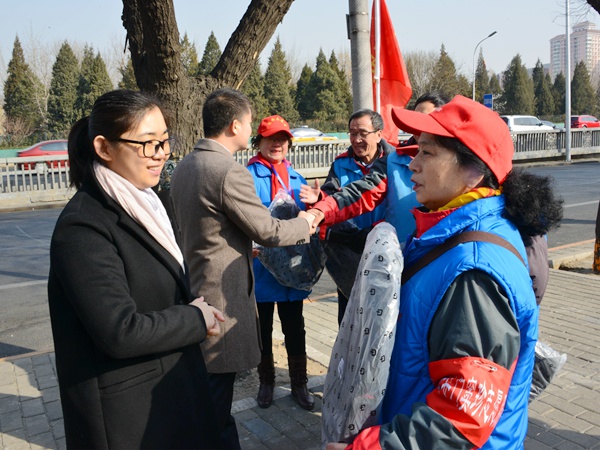 2018年03月2日,中共十九大代表、时代风帆楼宇党委书记韩青联合北京市丰台区政协委员、农工党党员楼宇企业乐居乐筑(北京)建筑材料有限公司总经理(法人)郑秋锁,走访慰问丰台区右安门窦珍志愿服务联合会的志愿者,为他们送去了慰问品,并对他们在志愿者服务工作中所付出的努力表示衷心的感谢。