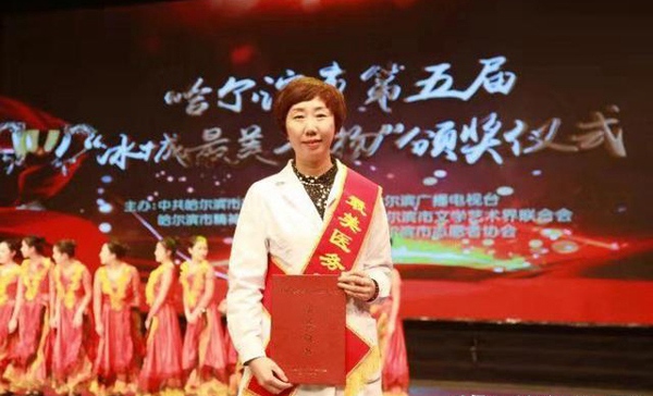 2018年12月4日下午,农工党哈尔滨市第一医院支部主委、哈尔滨市第一医院消化二科主任何英博士在哈尔滨市第五届“冰城最美人物”颁奖仪式上,获得由哈尔滨市精神文明建设指导委员会颁发的“最美医务工作者称号”。