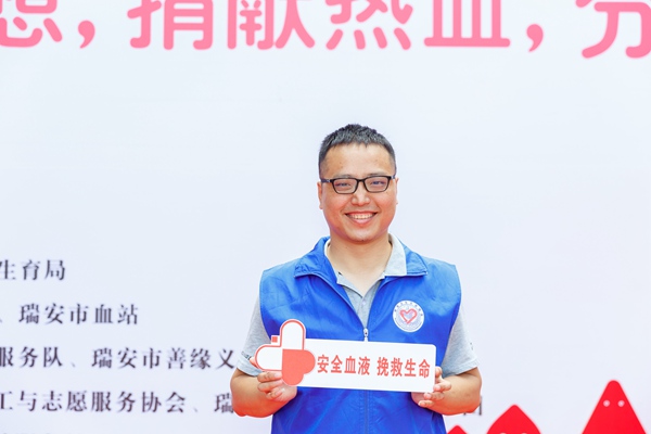 贾建东的献血事迹深深地感动着我们,我们为他能获得中华骨髓库五星级志愿者称号而感到骄傲、感到自豪。(农工党温州市委会)