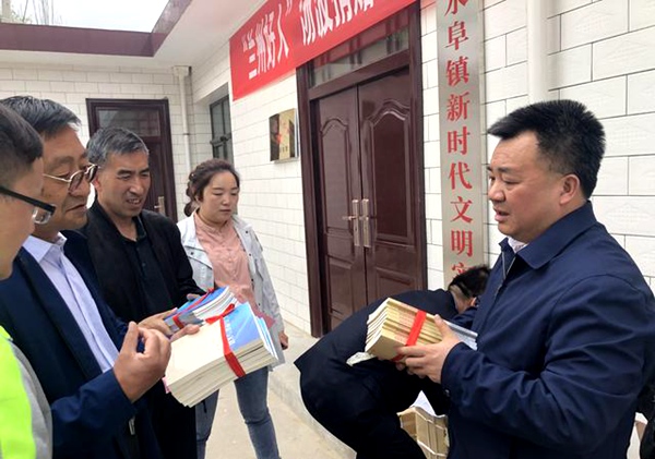 近日,汤波来到皋兰书院,为皋兰县图书馆捐赠价值6万元的文史类图书730余册和自己书写的书法作品一幅,为水阜镇捐赠200余册图书,这是汤波第二次为皋兰县图书馆捐赠图书。县文体广电和旅游局领导对爱心人士汤波捐赠图书、推广阅读和关心县图书馆发展的举动表示真诚的感谢,并赠送了锦旗。汤波也表示今后会持续关注县图书馆,捐赠更多图书,满足广大群众的精神文化需求,推动全民阅读活动深入开展,助力脱贫攻坚和经济社会发展,让书香飘满皋兰。