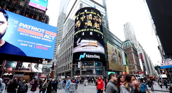 如果说纽约时代广场是“世界的十字路口”,纳斯达克大屏幕则是十字路口的标志牌。大屏以面积之大、世界影响之广,而成为全球各领域领先企业争相亮相的瞩目焦点。在时代广场上千块户外屏幕中,纳斯达克面积最大,其塔楼外部大屏幕被称为“世界第一屏”,也是中国品牌走向世界的重要渠道。今年是建国70周年,也是“一带一路”倡议提出第二个五年的开局之年,是向世界讲述中国品牌重要的时间节点。