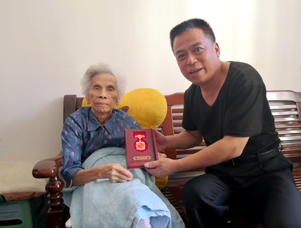 近日,农工党厦门市委会老党员杨秀华同志荣获“庆祝中华人民共和国成立70周年”纪念章。2019年9月18日,农工党厦门市委会专职副主委陈育斌看望杨秀华同志,并转授纪念章。杨秀华同志为福建省唯一一名获此殊荣的农工党党员。