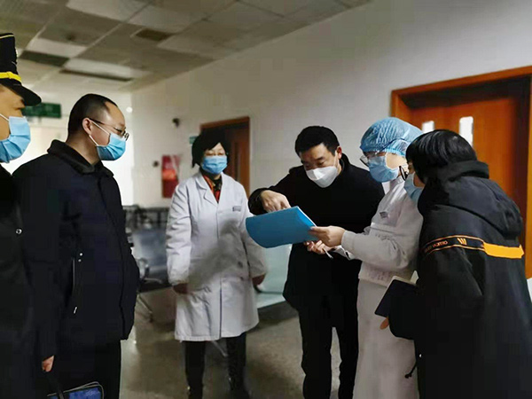 沈俊如(右二)接受县疾控中心及院感科的工作指导