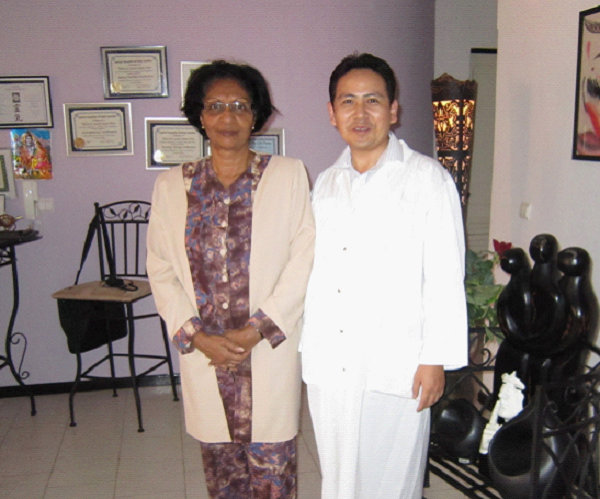 利用休息的时间出诊、接诊,对当地高层人士和中国驻佛得角大使馆人员进行免费医疗保健服务,佛得角现任总统佩德罗·皮雷斯(Pedro Verona Rodrigues Pires)先生病腰背疼痛,在接受针灸治疗后,对针灸的神奇疗效非常叹服,高兴地和我合影留念。佛得角现任总统的夫人阿德尔西亚·皮雷斯(Adelcia Pires)女士得了耳鸣,针灸后疗效很好。佛得角外交部长的夫人Lourdes Santes Prito女士患腰痛、佛方建筑监理安东尼奥先生患胸背疼痛,针灸后很快恢复健康。中国驻佛得角大使馆李春华大使腰扭伤,治疗2次即愈;驻佛大使馆经济商务参赞处李永军参赞患膝关节炎、右股四头肌损伤、双手腕腱鞘炎,经针灸治疗后很快痊愈;驻佛大使馆办公室主任兼政治部主任常志强主任腰扭伤,驻佛大使馆的张厨师腰扭伤等,均针灸5次痊愈。下到平民百姓,上到国家总统,中外人士,都乐于接受针灸治疗,均被中医针灸的神奇疗效所折服,经过接触交流,我与受援国的很多干部群众结下了深厚的友谊。