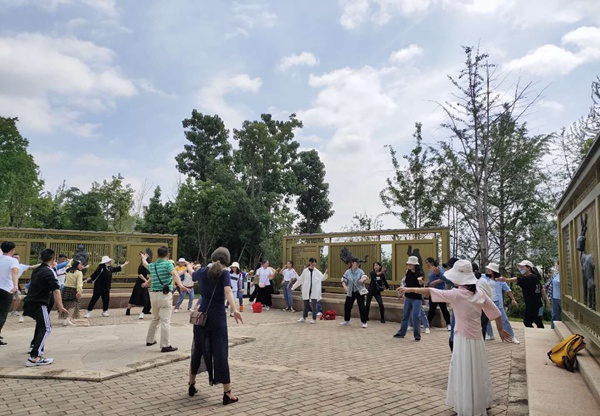 在五禽戏广场,饶忠明首先带领学生了解深耕国学文化公园、十二生肖广场、五禽戏文化广场的相关传统文化和知识。在此基础上,还做了黄帝内经的养生智慧专题讲座,详细介绍了中医养生基本理论以及与中国传统文化特别是与易经之间的联系,给出了与昭通节令、气候、饮食生活习惯相适应的中医养生方法,浅显易懂、极富实用性,深受同学们的喜爱。饶忠明还带领同学们练习太极拳,告诉大家勤练太极拳对人体健康大有裨益。