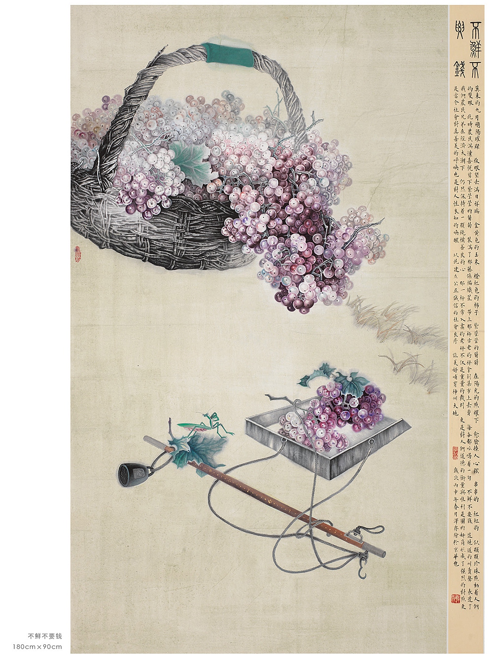 国画《不鲜不要钱》是画家李泽存成名之作,早在20世纪80年代,此作品在《全国教育工作者书画大展)上获金奖,高180cm,宽90cm,是当今葡萄作品中有深远意义的佳作。