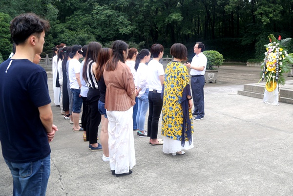 7月8日,学员们在市委会副主委兼秘书长汤忠元的带领下,前住南京祭扫邓演达烈士陵墓(005号农工党党史教育基地),学员们怀着无比崇敬的心情聆听了农工党主要创始人邓演达同志的生平简介,在墓前默哀致敬,并绕行烈士陵墓瞻仰,表达对先烈的崇敬缅怀之情。