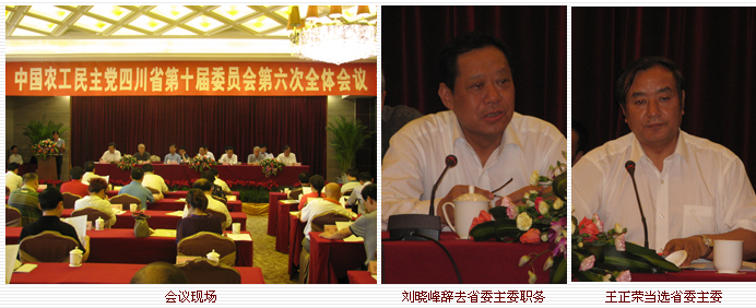 5月9日,中国农工民主党四川省第十届委员会第六次全体会议在成都新良酒店召开。农工党中央副主席陈勋儒、刘晓峰,农工党中央组织部部长曲凤宏,农工党省委老领导李克光、唐运张等领导出席会议。会议主要议题是进行农工党四川省十届委员会的届中调整。会议通过了刘晓峰同志因调任农工党中央副主席辞去中国农工民主党四川省第十届委员会主任委员职务的决定,并选举王正荣同志为中国农工民主党四川省第十届委员会主任委员。中共省委统战部副部长聂文强受中共四川省委常委、秘书长、统战部部长陈光志委托到会祝贺,