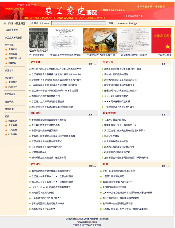 在农工党山西省委主要领导的关心和支持下,经过多方筹备,日前,农工党史博览网(http://ds.ngdsx.org.cn)正式开通。