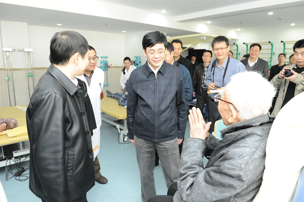 调研组一行来到慢病区。何维副主席走进一间病房,与躺在床上的老太太亲切交谈:“您在这住院一个月要交多少钱?伙食怎样?这里好吗?”老太太回答:“只要交2720元,伙食可以,这里的条件很好,服务好!”何维副主席听了露出了笑容。在功能训练区,何维副主席来到一间训练房,令大家惊讶的是92岁高龄的台湾著名词作家庄奴也在这里养老,他是重庆市的荣誉市民,他创作的《甜蜜蜜》曾在大陆广为传唱。何维副主席上前于庄奴亲切交谈:“老人家,您觉得这里有什么特色?”庄奴回答:“这里的服务热情,服务到位。”何维副主席接着说:“现在这里搞医养结合,您在这里可以甜蜜蜜地安享晚年。”庄奴简洁地回答:“病者的福音!”
