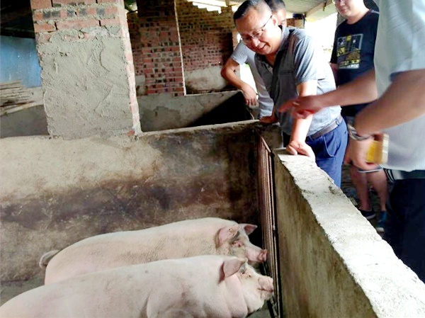 卢赐恩查看石榴村三社贫困户曾世昌家生猪养殖