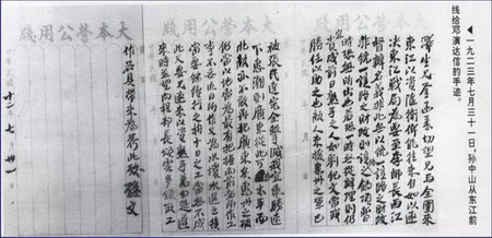 中山先生亲笔信: