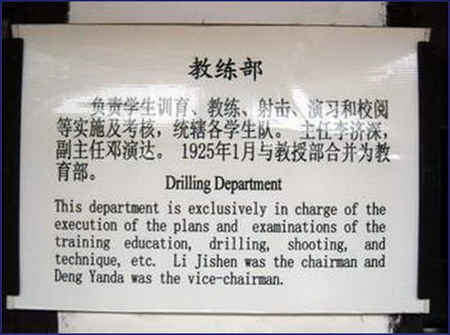 邓演达历任黄埔军校入学试验委员会委员、上海考场主考官、教练部副主任、学生总队长、教育长等职,本照片实拍于黄埔军校旧址纪念馆