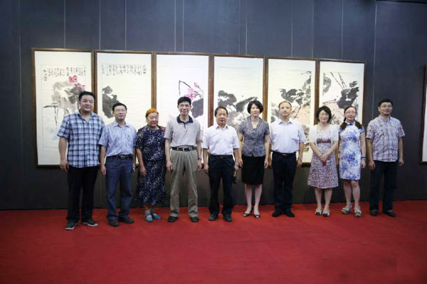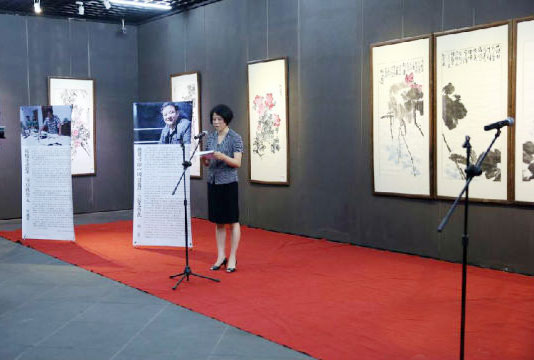 农工党中央宣传部部长、前进论坛杂志社社长石光树 ,前进论坛杂志社副社长、副主编刘保明,绍兴市美术馆馆长、原九三学社绍兴市委会主委、绍兴市政协副主席陆景林 ,中国美协艺委会委员、北京语言大学教授金亭亭,农工党浙江省委会秘书长田野,农工党绍兴市委会副主委洪安龙等领导、来宾参加了开幕式并致贺词,开幕式由绍兴市政协副主席、农工党绍兴市委会主委胡少云主持。