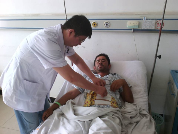 数月前,一位克族19岁青年叫斯肯代尔,是家中独子,车祸使他腹腔内脏破裂伴急性腹膜炎、休克、麻痹性肠梗阻,急性颅脑损伤、创伤性湿肺,经医院多学科会诊,张医师和普外科同仁急诊剖腹手术,历经及时抢救与一个多月的治疗,9月13日康复出院,给了其父母生活的希望。