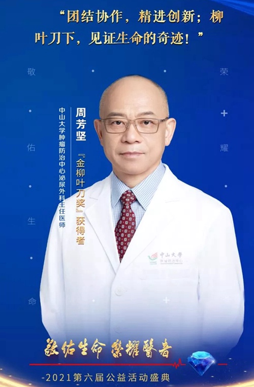 2021年12月8日,由环球时报、生命时报主办,中国中医药科技发展中心、中国初级卫生保健基金会公共卫生专业委员会联合主办的2021“敬佑生命·荣耀医者”第六届公益活动在北京举行。农工党党员、中山大学肿瘤防治中心泌尿外科主任周芳坚教授荣获“荣耀医者·金柳叶刀奖”。