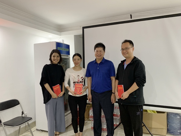 曾广庆(左三)向新党员赠送党章