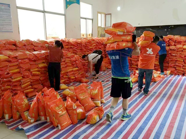 2016年7月4日早上,汨罗市突降暴雨,汨罗玉池山区突发山洪,导致弼时镇鹤泉村突发山洪,冲毁道路并导致3栋民房倒塌,1人失踪。同时该镇大华村一渠道水满溢出冲垮一栋民房,2人被埋。傅强带领志愿者一边统计灾情数据,一边分析着灾民需求,同时积极与壹基金联系,根据灾民需求,在汨罗市弼时镇玉池片发放大米3070公斤,食用油1535升,在汨罗川山坪镇达摩岭村发放大米2930公斤,食用油1465升。