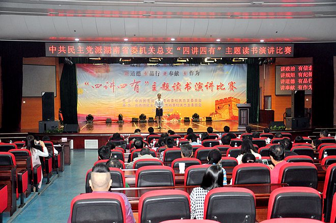 2016年10月12日上午,中共民主党派省委机关总支“四讲四有”主题读书演讲比赛今在省民主党派机关会议中心举行,来自总支所属各支部10位选手结合自己学习感受和工作实际从不同角度诠释“四讲四有”丰富内涵和践行之道。其中农工党省委会机关干部谢钦薪演讲的《今天,我们需要什么?》荣获一等奖。中共湖南省委统战部巡视员刘权应邀出席并讲话。农工党湖南省委会专职副主委蒋秋桃全程指导并颁奖。