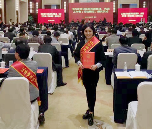 2016年10月25日,从南京传来消息,农工党南通市文教支部党员,年轻的“魔术女孩”、“白鸽皇后”丁洋参加了江苏省文化系统先进集体、先进工作者(劳动模范)颁奖大会,她被江苏省人力资源和社会保障厅、江苏省文化厅联合授予“江苏省文化系统先进工作者(劳动模范)”荣誉称号。