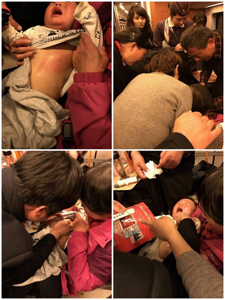2017年3月16日晚6时40分许,在D2206次列车上,无锡市第26期党外干部研修班学员正在集体赶赴重庆学习的途中。突然他们听到列车紧急广播:14号车厢幼儿烫伤,寻求医生帮助。参加培训班的三位农工党党员医生董若凡、华巍峰、张亚菁立即起身赶往。