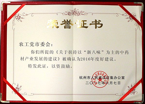 此榜单的29条好建议中,农工党杭州市委会报送的《关于扶持以“浙八味”为主的中药材产业发展的建议》及农工党党员邹玉华《关于将杭城建成立体花园式城市的建议》、顾忠其《关于评选杭州市“市鸟”的建议》、汪宏农《关于加快恢复孙宝琦墓址(碑)的建议》等4条建议光荣上榜。