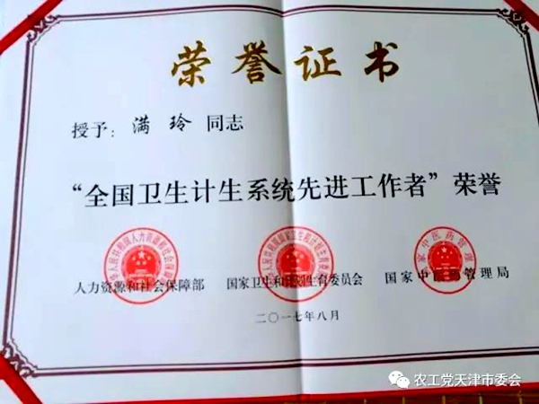 农工党党员满玲被评为全国卫生计生系统先进工作者