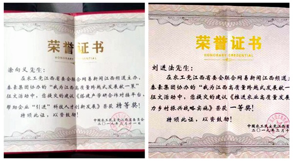 近日,由农工党江西省委会联合网易江西频道主办,泰豪集团协办的“我为江西高质量发展献一策”征文活动评出了特等奖1名、一等奖3名、二等奖6名、三等奖10名。农工党新余市委会副主委、新余日报社副总编涂向义撰写的《搭建产学研合作平台,帮助企业“引进”科技人才创新发展》被评为特等奖;农工党党员、新余市农业局经济作物站站长刘进法撰写的《推进农业高质量发展 助力乡村振兴战略实施》被评为一等奖。(伍伏海)