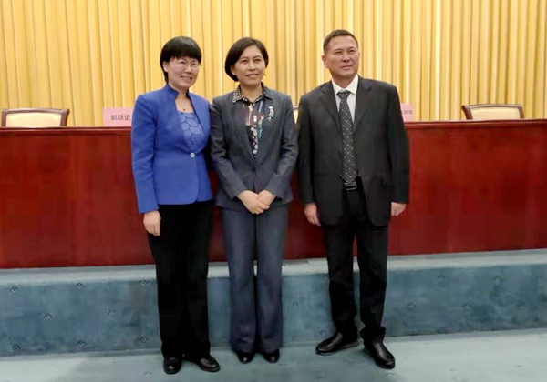 农工党湖北省委会主委杨玉华(中)与李保国(右)合影