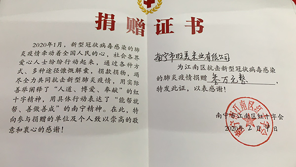 南宁旺美米业有限公司第一笔捐款3万元。