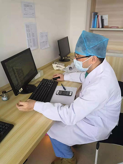 他会提醒每一位进入隔离病房的同事穿脱防护服注意事项,叮嘱大家及时洗脸、用生理盐水漱口、擦拭外耳道等个人的防护。他学术严谨,带领医护人员仔细查看病人的资料,分析病情,指导用药,及时学习新的诊疗指南,更新自己的知识储备,为打好疫情攻坚战做好知识贮备。