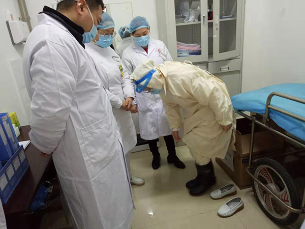 19:20,“必须立即在医院内展开培训!”19:57,放不下心的庞怀书对值班的医务人员再次进行了培训,并一再叮嘱“战友们”除了每日对患者病房的两次消毒,一定要做好个人防护。