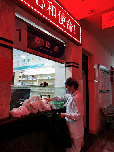 当忙完一天的科室工作后,汤赛飞就抓紧时间奔赴各村收集市民卡及药品清单,每天都有近三十单。在晚上21点到23点避开人多密集的时间返回医院开好药,装袋并备注上哪家哪户,每每做完这些都已接近凌晨。待到第二天下午回到各个村,将每村的药都分送至卡口,再由各个村干部将药送到每家每户。